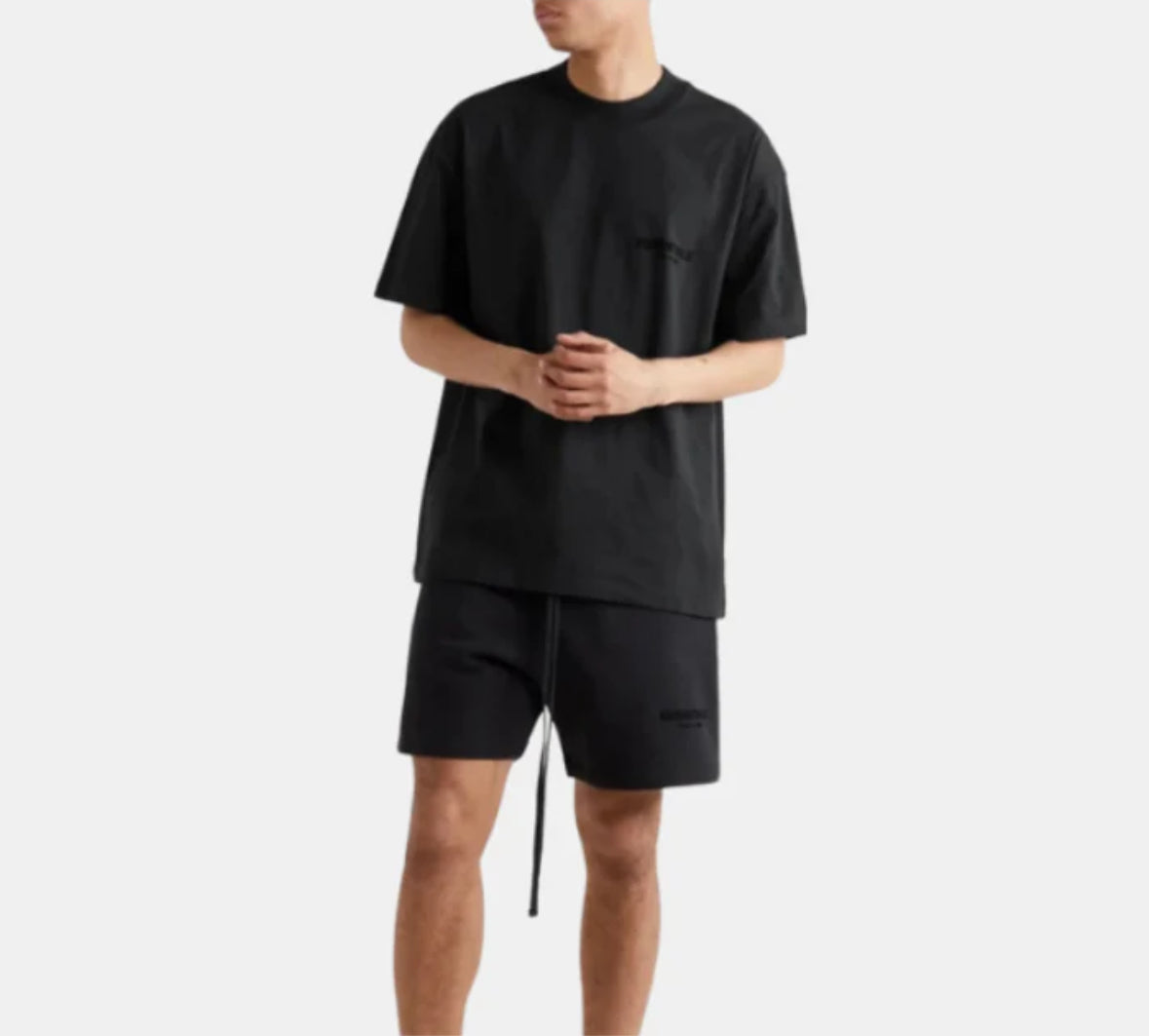 The Fear of God Essentials Short Set Black (SS22) is a sleek, minimalist two-piece outfit featuring a black t-shirt and matching shorts. Made from a soft, premium cotton-blend fabric, the set offers a relaxed fit that combines comfort with style. The t-shirt features subtle Essentials branding on the chest and a rubberised logo patch on the back, while the shorts come with an elastic waistband and drawstring for a customisable fit. Both pieces share the same understated black tone, making the set versatile and perfect for casual, everyday wear with a contemporary streetwear vibe.