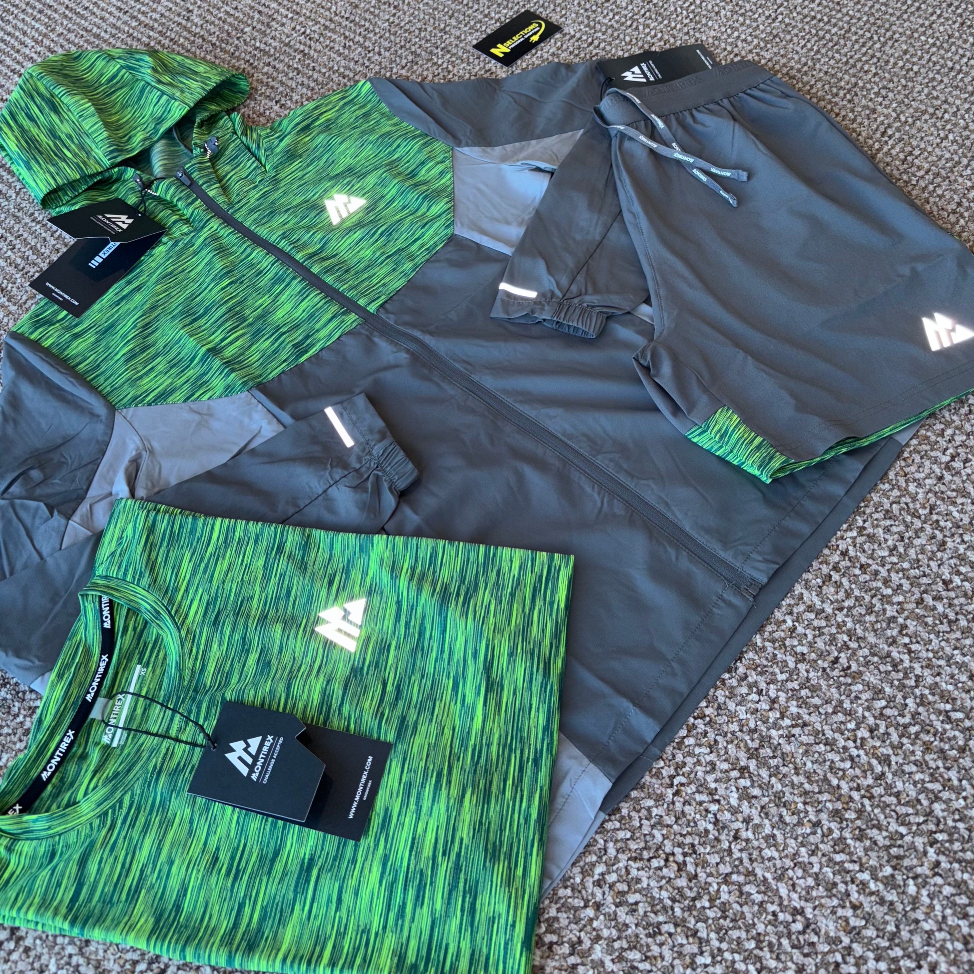 Level up your fit with the Montirex Trail Trio Set in Grey, Green, and Black — a premium 3-piece outfit that includes a lightweight jacket, performance t-shirt, and matching shorts. Designed for versatility, movement, and standout style, this trio set is perfect for workouts, casual wear, or elevated street style.